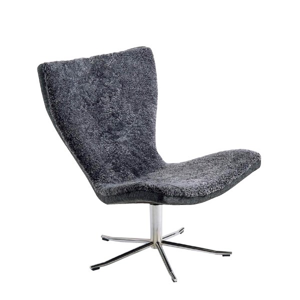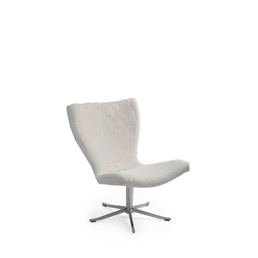 Snurrfåtölj i fårskinn, läder eller tyg Snurrfot i formgjuten aluminium eller vitlackad formgjuten aluminium. Priset avser Gyro fåtölj utan armstöd eller nackkudde i fårskinn.