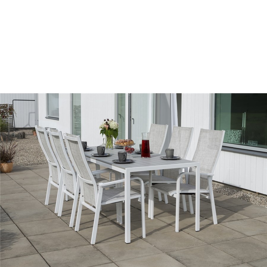 Hånger är en stilren och lättskött möbelgrupp i vit aluminium och textilen.