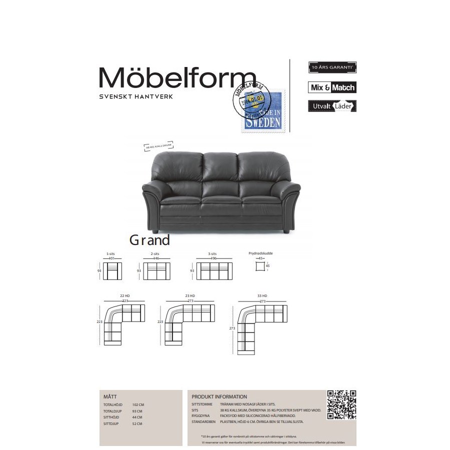 Soffa Grand finns att få som 3-sits, 2-sits, 1-sits eller hörnsoffa i både tyg och läder. Priset avser 3-sits i tyg prg 1.
