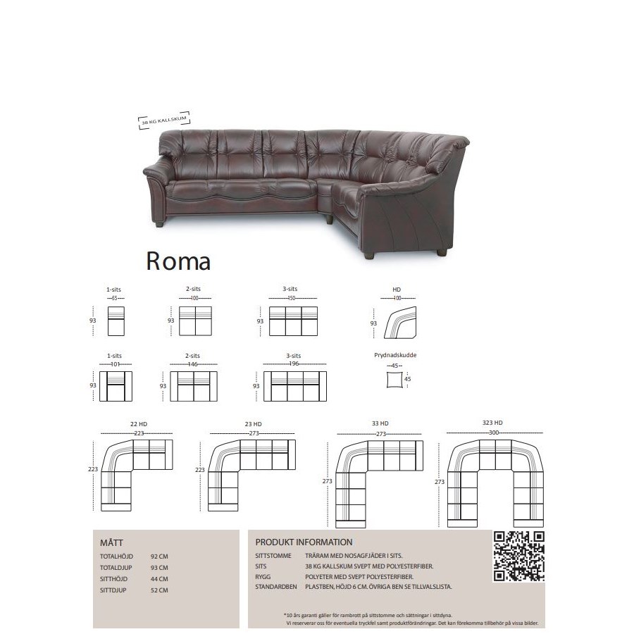 Byggbar soffa Roma finns i både tyg. skinn och skinn/konstläder. Mått och pris avser soffa enligt bild i skinn/konstläder.