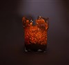 Handgjord ljuslykta med oregelbunden form och transparenta glaspartier som skapar ett magiskt ljusspel.