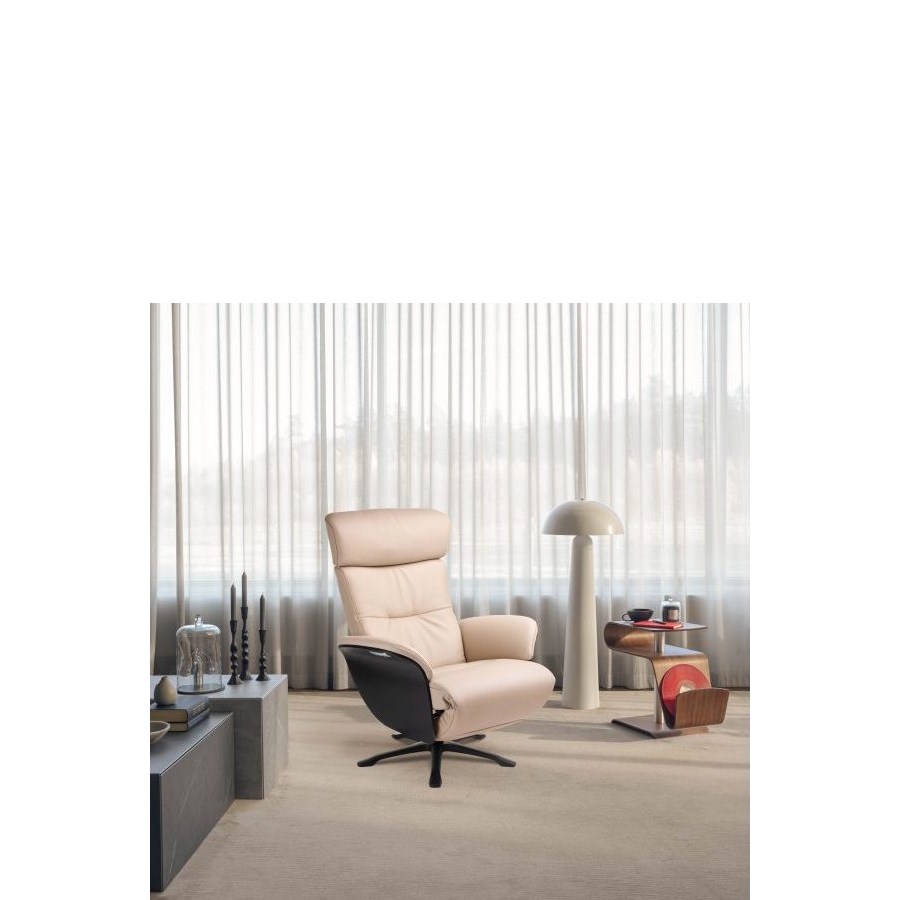 Nova är en elektrisk reclinerfåtölj som kombinerar elegant design med maximal komfort. Med justerbart nackstöd och integrerad kontrollpanel. Formpressad ytfanér i lackad valnöt, ek, obehandlad ek eller svartbetsad ek. Snurrfot i aluminium eller svartlackad aluminium. Klädsel går även att välja tyg eller fårskinn. Priset avser läder grupp 20.