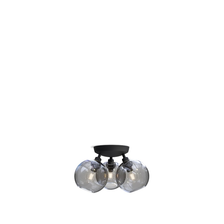 Plafond i metall och klarglas, med tre eller fyra glas. Klassisk och trendig på samma gång. Anpassad för takkrok. Frånpris med tre glaskupor.