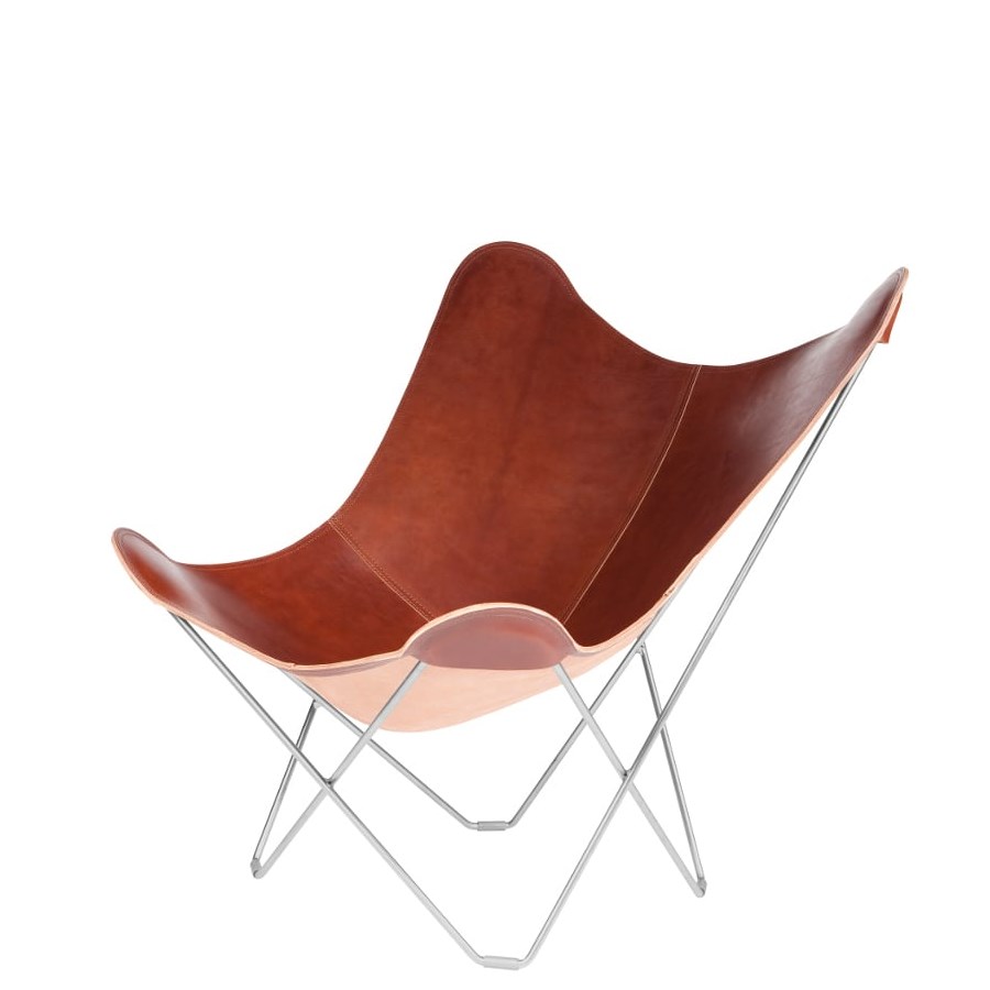 Butterfly-fåtölj i olika läder. Välj mellan svart benställning eller kromad. Tillägg för kromad benställning +1000 kr.