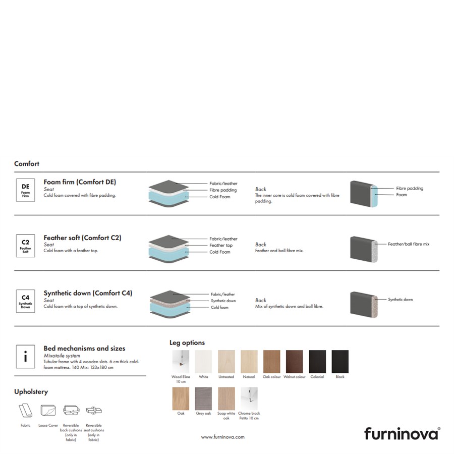 Soffan Petito med avtagbar klädsel finns i flera olika modeller. Välj mellan två olika komforter. Frånpris 2-sits med två sittkuddar i prisgrupp A.
