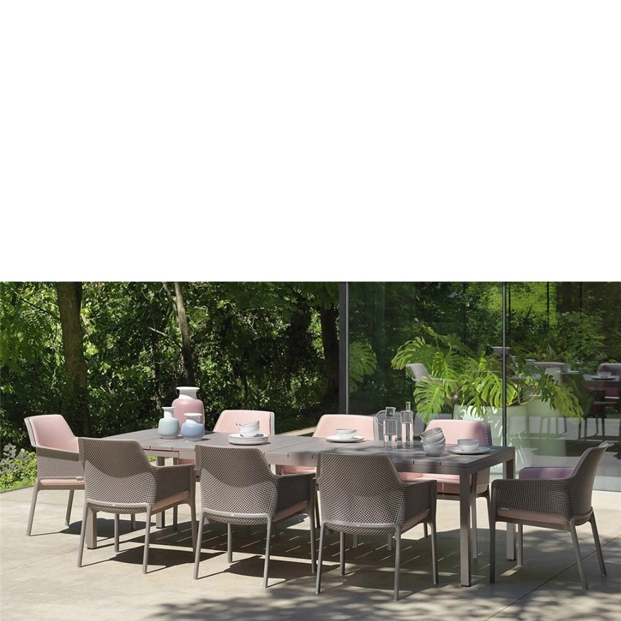 Utdragbart bord från Nardi. Ben i aluminium och bordsskiva i polypropen. Går att förlänga till 280 cm långt. Detta är ett snyggt och mycket tåligt bord som passar både till vardag och till fest för många.