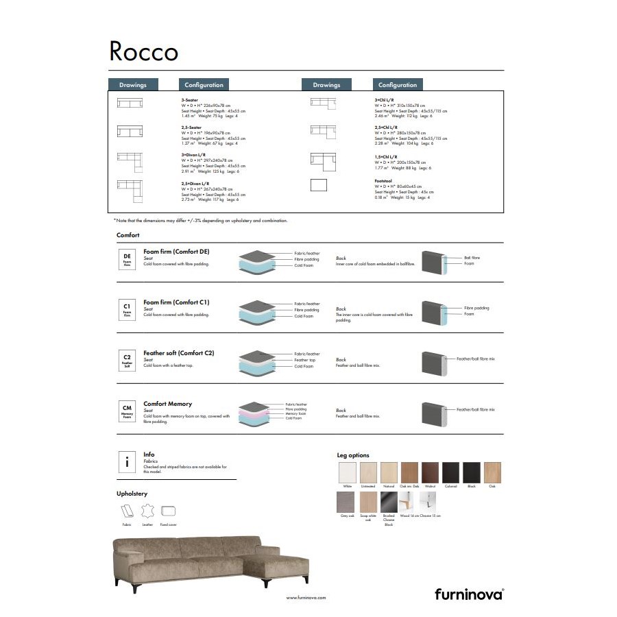 Soffa Rocco är en byggbar soffa som finns i flera storlekar och komforter i både tyg eller läder. Välj mellan flera olika benalternativ. Frånpris 2,5-sits + schäslong i tyg A.