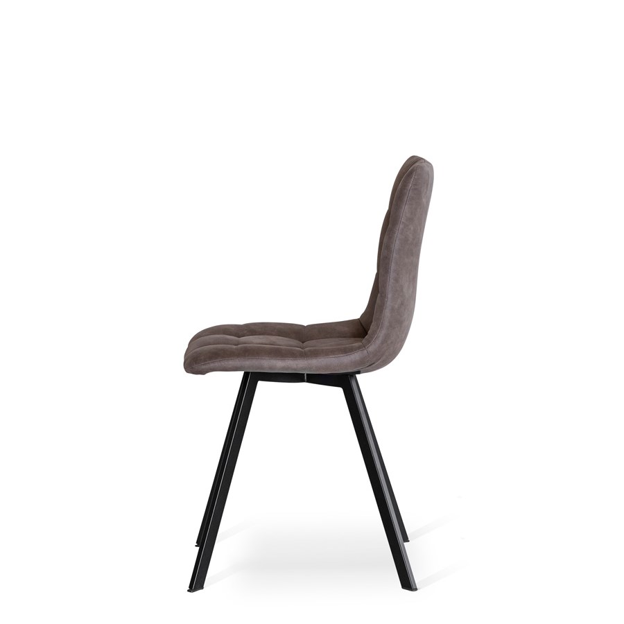 Ruth stol i beigefärgat microfibertyg och underrede i pulverlackad svart metall. Finns i brunt, beige och grått.