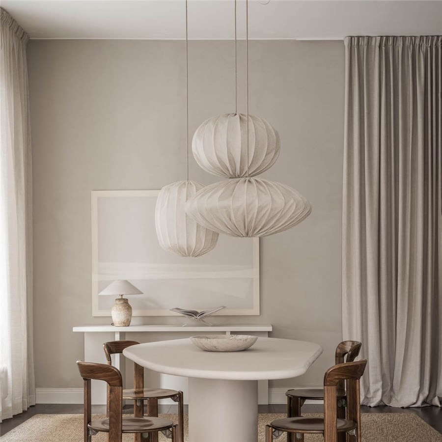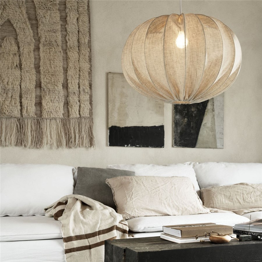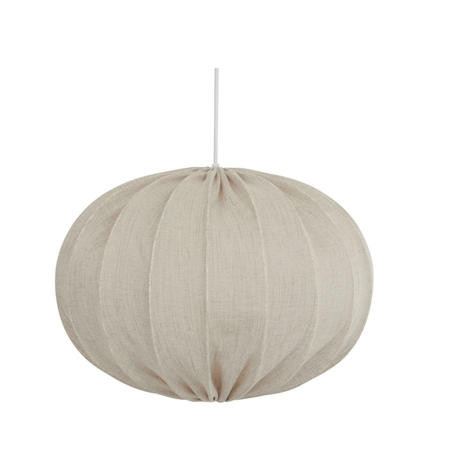 En pumpaformad taklampskärm i linnetyg. Exkl takupphänge.