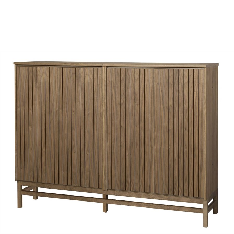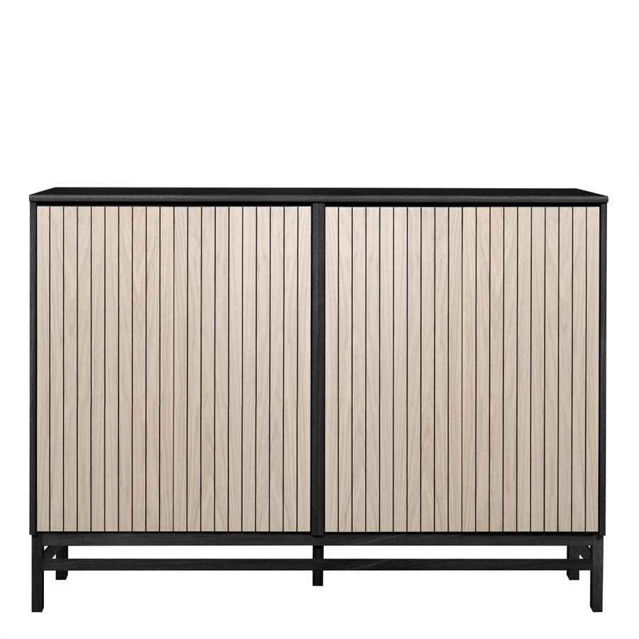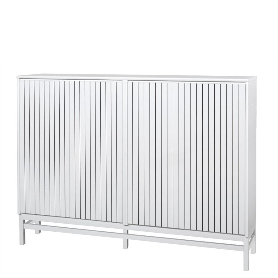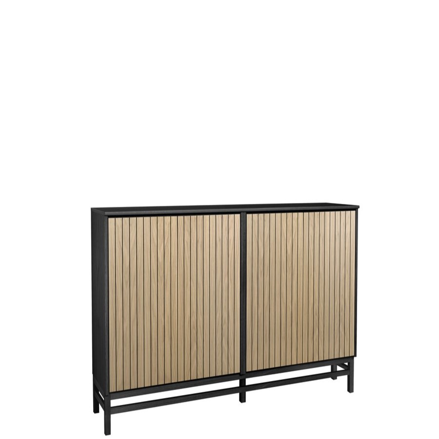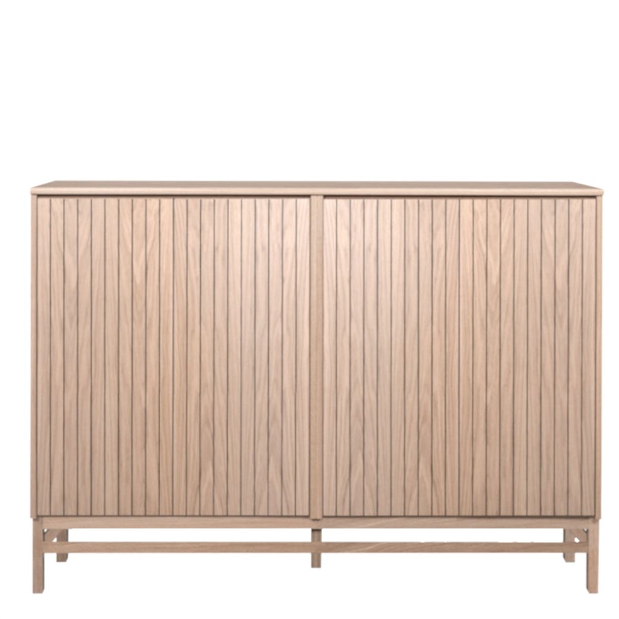 Med Timantti kan du designa din egen TV-bänk, skänk eller vitrinskåp av färdigmonterade stommar i olika format och storlek. Här med träbenstativet Atmosphere med möjlighet att måttanpassa till önskad längd, max 240 cm. Ribbdörrar och vitrindörrar med träram har en push-open mekanism i stället för handtag. Välj fritt bland färgerna på både stommar och dörrar.