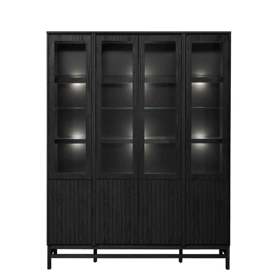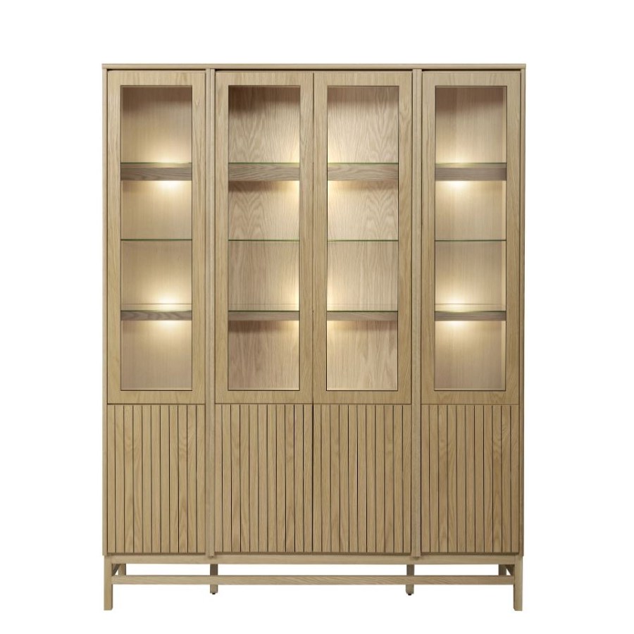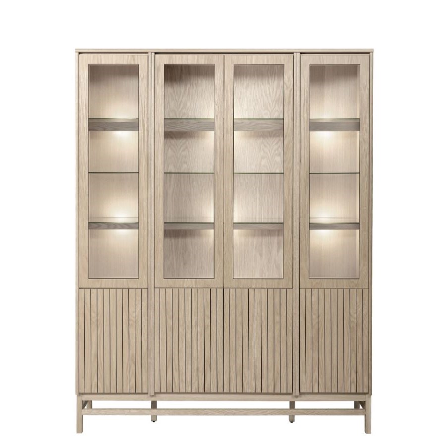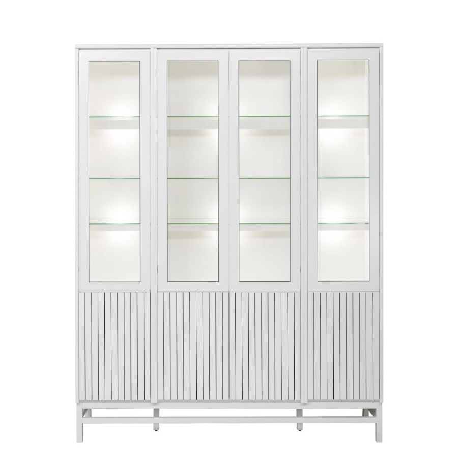 Med Timantti kan du designa din egen TV-bänk, skänk eller vitrinskåp av färdigmonterade stommar i olika format och storlek. Här med träbenstativet Atmosphere med möjlighet att måttanpassa till önskad längd, max 240 cm. Ribbdörrar och vitrindörrar med träram har en push-open mekanism i stället för handtag. Välj fritt bland färgerna på både stommar och dörrar.
