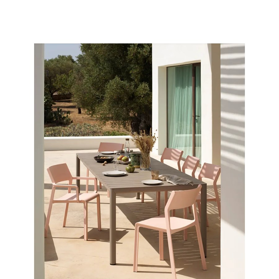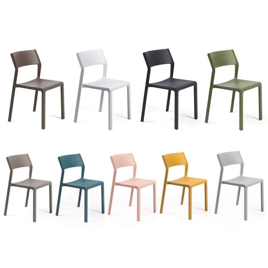 Stapelbara stolen Trill från Italienska Nardi. Finns i olika färger och även med karm. Stolen är formgjuten i fiberglasförstärkt polypropen. Går att ha både utomhus och inomhus.