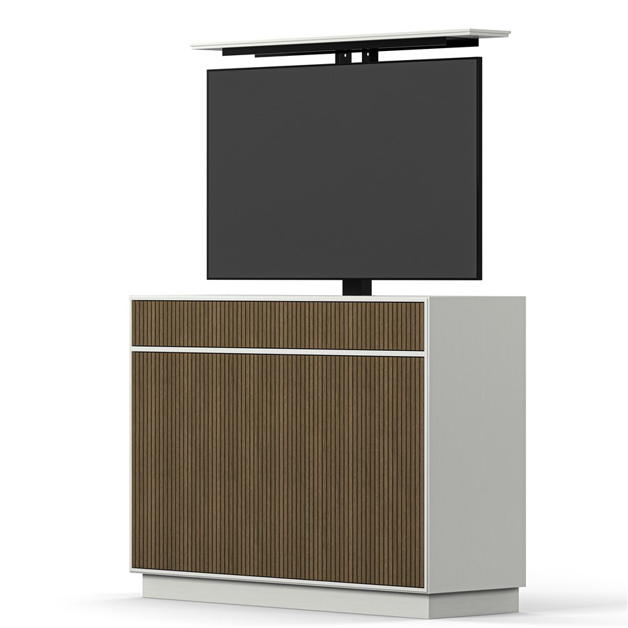 Ny kollektion med TV-liftar så du kan hålla din TV utom synhåll och genom ett knapptryck på fjärrkontrollen kan du lyfta och sänka din TV ur skänken. Bakom sockeln finns 6 stycken hjul som gör möbeln lätt att flytta på.