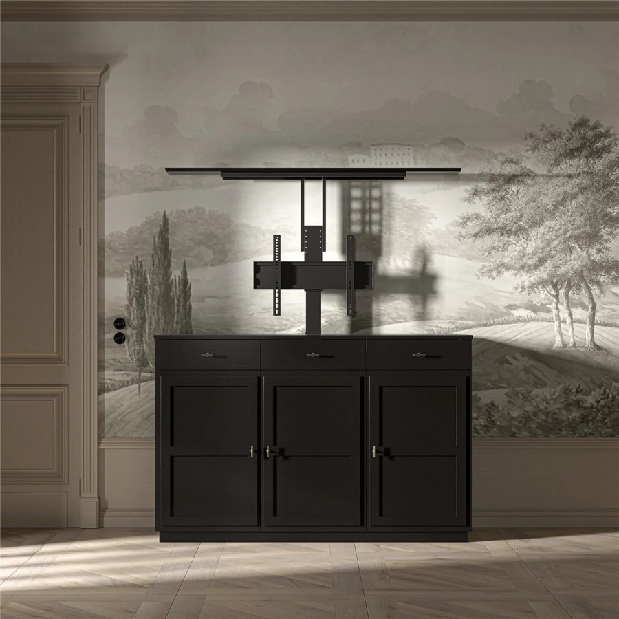 Ny kollektion med TV-liftar så du kan hålla din TV utom synhåll och genom ett knapptryck på fjärrkontrollen kan du lyfta och sänka din TV ur skänken. Bakom sockeln finns 6 stycken hjul som gör möbeln lätt att flytta på.