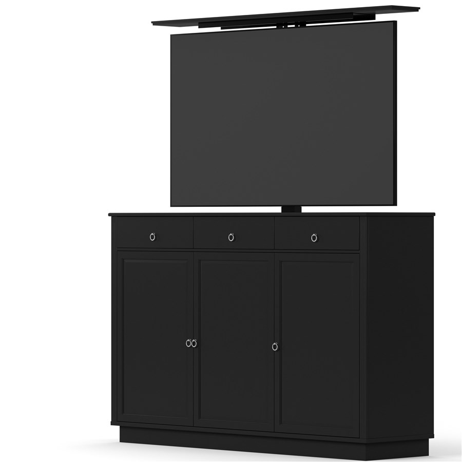 Ny kollektion med TV-liftar så du kan hålla din TV utom synhåll och genom ett knapptryck på fjärrkontrollen kan du lyfta och sänka din TV ur skänken. Bakom sockeln finns 6 stycken hjul som gör möbeln lätt att flytta på.