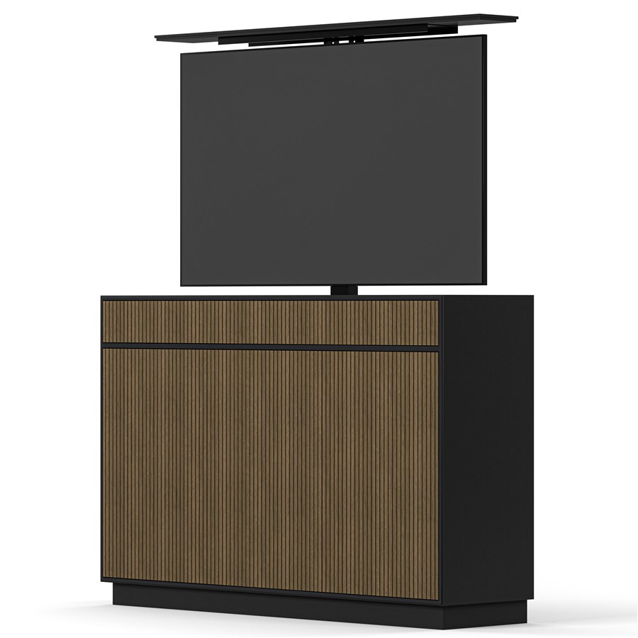 Ny kollektion med TV-liftar så du kan hålla din TV utom synhåll och genom ett knapptryck på fjärrkontrollen kan du lyfta och sänka din TV ur skänken. Bakom sockeln finns 6 stycken hjul som gör möbeln lätt att flytta på.