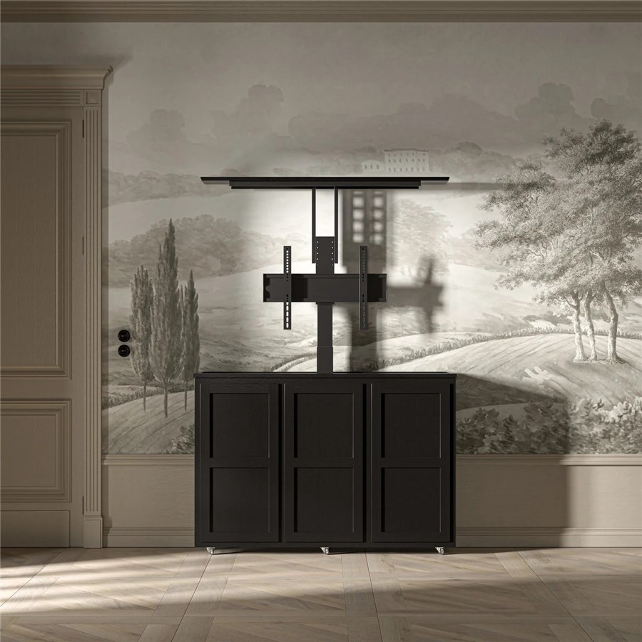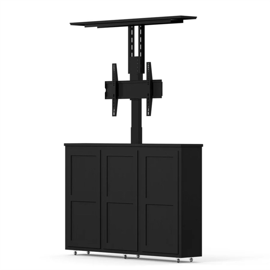 TV lift Slim med den unika designen som gör att både fram- och baksida ser likadana ut, vilket ger dig möjligheten att placera möbeln mitt i ett rum. Medföljande hjul och sockel ger dig valfrihet att ha en mobil möbel eller om du föredrar att den står stabilt på golvet. TV-liften går att styra med en fjärrkontroll eller via en app i din smartphone.