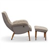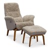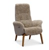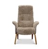 Visby ek har fällbart ryggstöd som formas efter rygg och nacke när det fälls bakåt. Fåtöljen har träben i ekfanér. Löstagbara armstödsskydd i tyg och pall ingår.