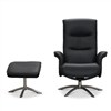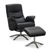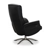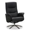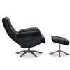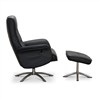 Visby snurrfåtölj har fällbart ryggstöd som formas efter rygg och nacke när det fälls bakåt. Löstagbara armstödsskydd i tyg och pall ingår. Visby snurrfåtölj finns i Läder, Fårskinn/tyg och Tyg Loft som är OEKO-Tex certifierat.