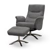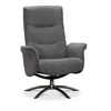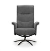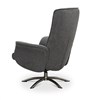Visby snurrfåtölj har fällbart ryggstöd som formas efter rygg och nacke när det fälls bakåt. Löstagbara armstödsskydd i tyg och pall ingår. Visby snurrfåtölj finns i Läder, Fårskinn/tyg och Tyg Loft som är OEKO-Tex certifierat.