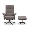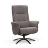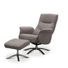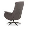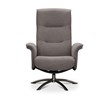 Visby snurrfåtölj har fällbart ryggstöd som formas efter rygg och nacke när det fälls bakåt. Löstagbara armstödsskydd i tyg och pall ingår. Visby snurrfåtölj finns i Läder, Fårskinn/tyg och Tyg Loft som är OEKO-Tex certifierat.
