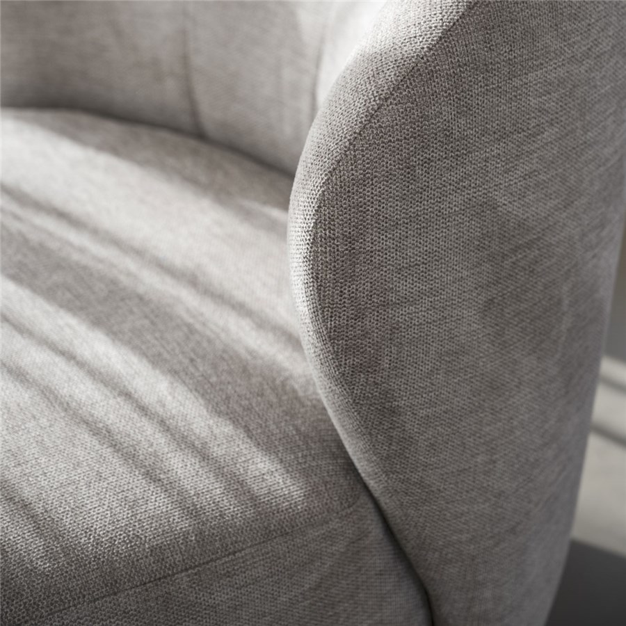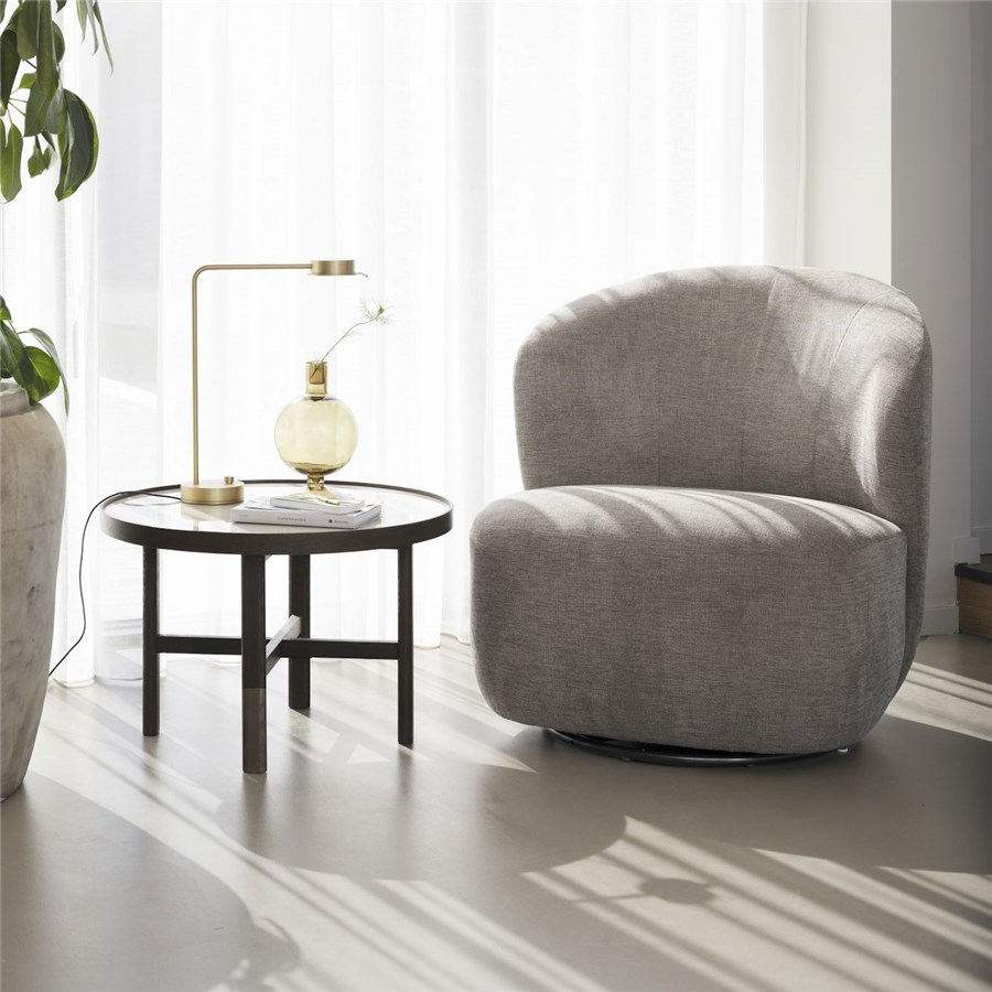 Roselawn är en stoppad fåtölj med mjuka runda former och dekorativa textilsömmar. Fåtöljen har en 360-graders snurrfunktion.
