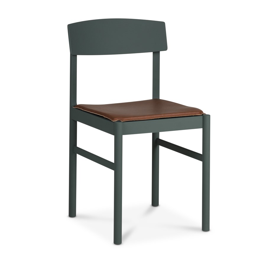 Rod stol finns i flera olika varianter. Tre skinndynor finns som tillval i mocca, svart och cognac.