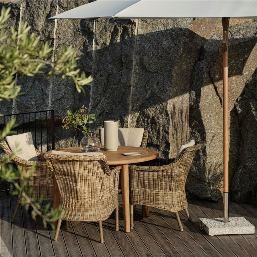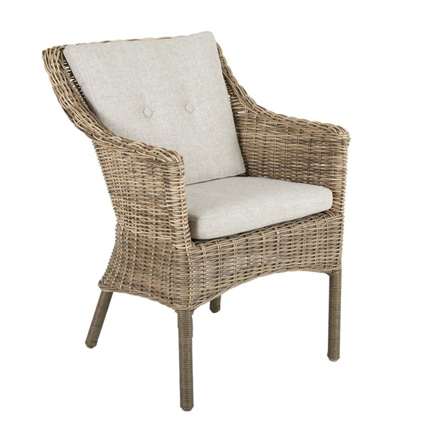 Lenora karmstol i rustik stil passar utmärkt till våra teakbord. Ingår sittdyna. Ryggdyna kan köpas till för 230 kr.