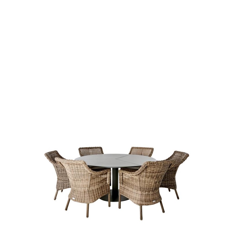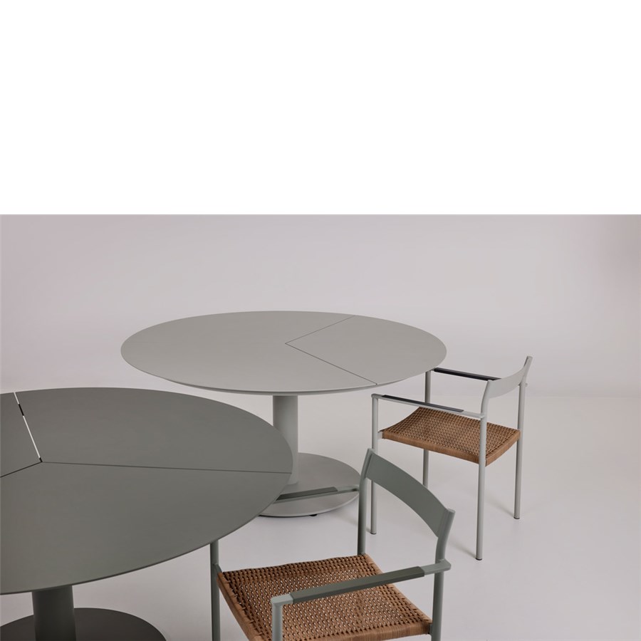 Stilfulla matbordet Peace i aluminium från Brafab. Hela 150 cm i diameter så att man får plats många runt middagsbordet. Pelaren i mitten gör att man också får plats med benen utan att behöva trängas. Bordet är även utrustat med justerbara fötter. Finns i tre färger.