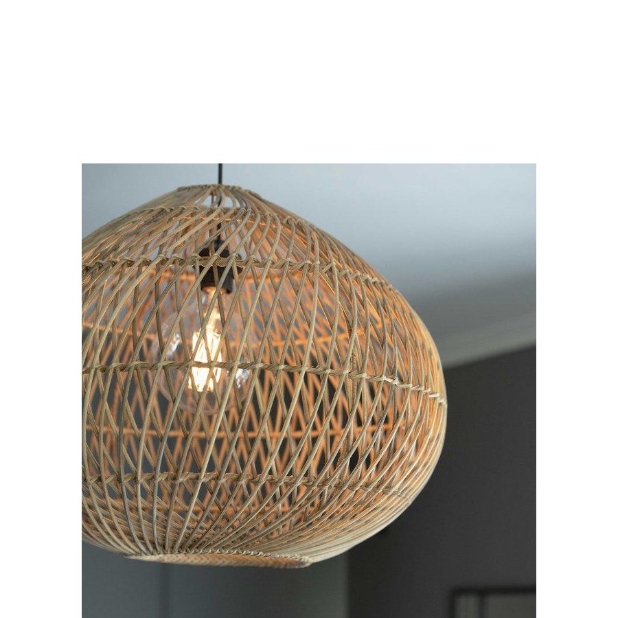Taklampa Karen i flätad rotting. Levereras med sladdställ men takkontakt köpes separat.