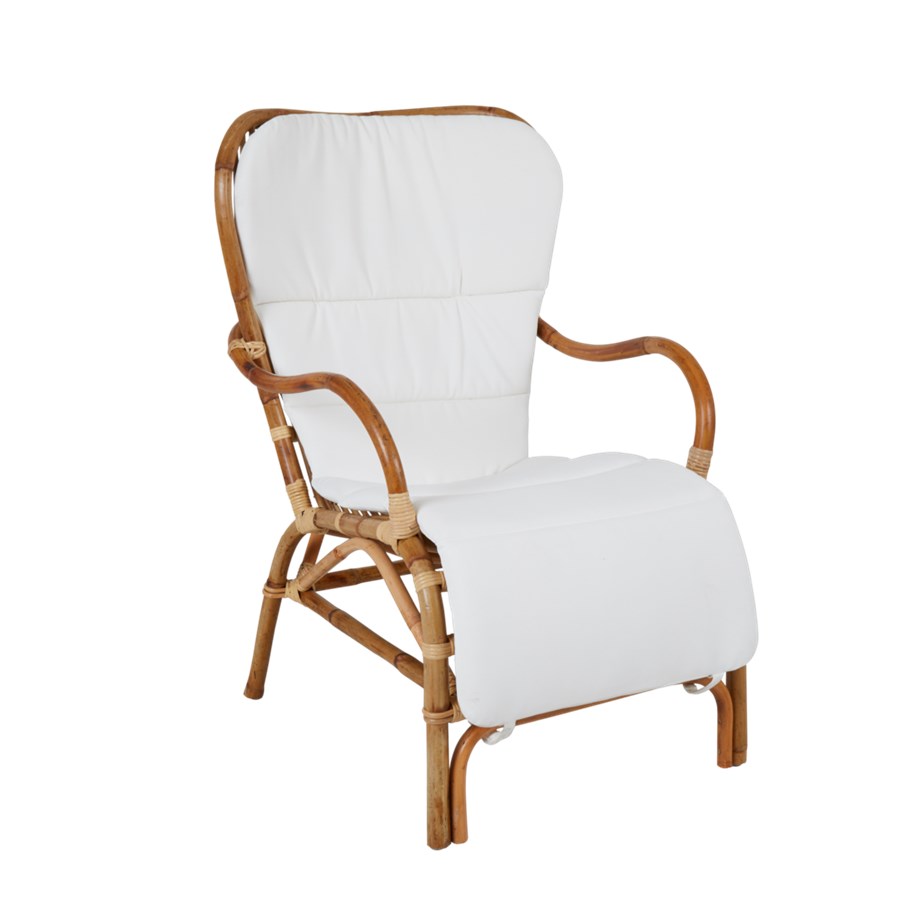 Vallda fåtölj i flätad naturrotting. Möbler i rotting bör placeras under tak. Dyna finns att köpa till för 1395 kr.