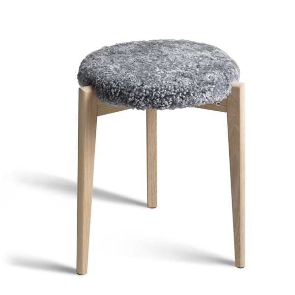 Vinz pall med otroligt många kombinationsmöjligheter. Den tillverkas i ek, ask och valnöt med antingen massiv träsits eller äkta fårskinn. Pallen är staplingsbar.