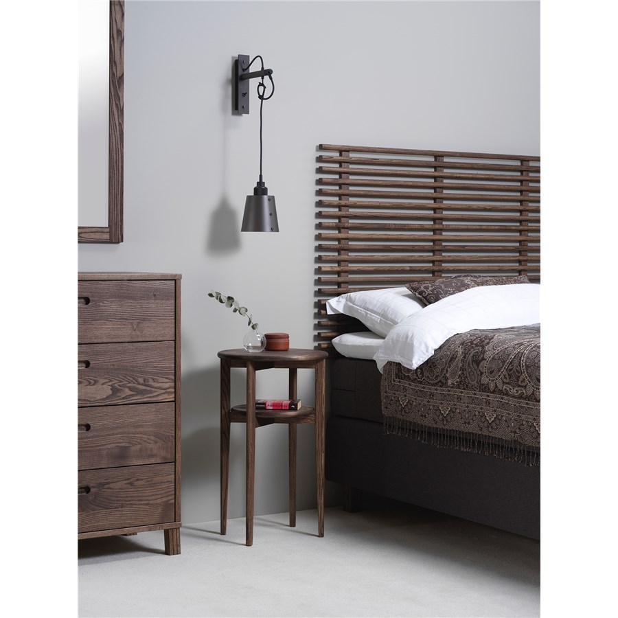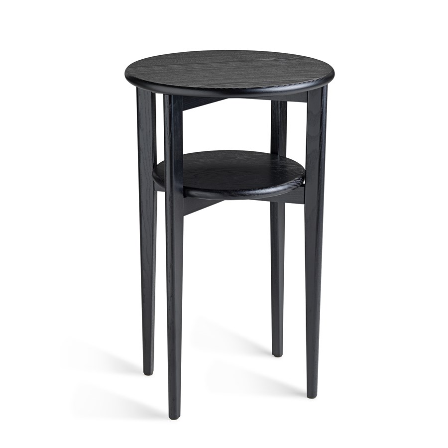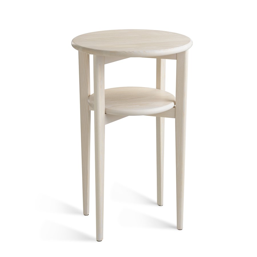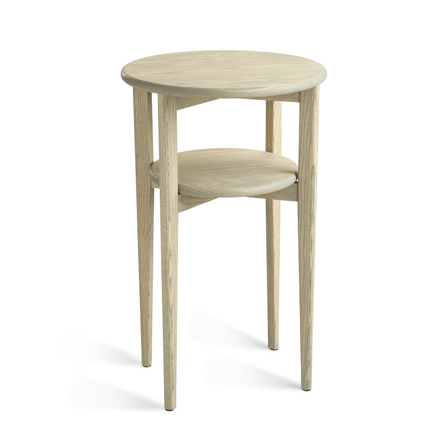 Mira sängbord ett lättplacerat runt bord med mjukt rundade kanter på både bordsskivor och ben. Bordet tillverkas i massiv ask (vitoljad, gråoljad, brunoljad och svartbetsad) eller i björk/mdf i vitlack.