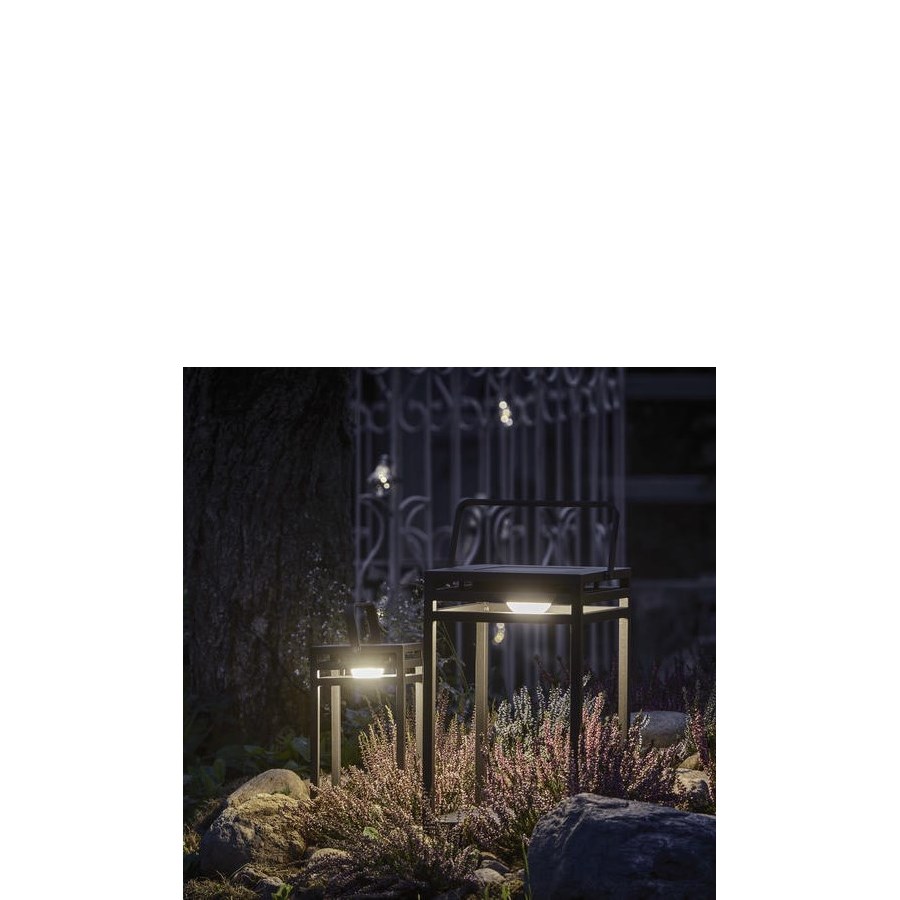 Stilfull belysning med LED-lampa och solceller. Lyktan laddas via solcell eller USB. Finns i grått och vitt i två olika storlekar.
