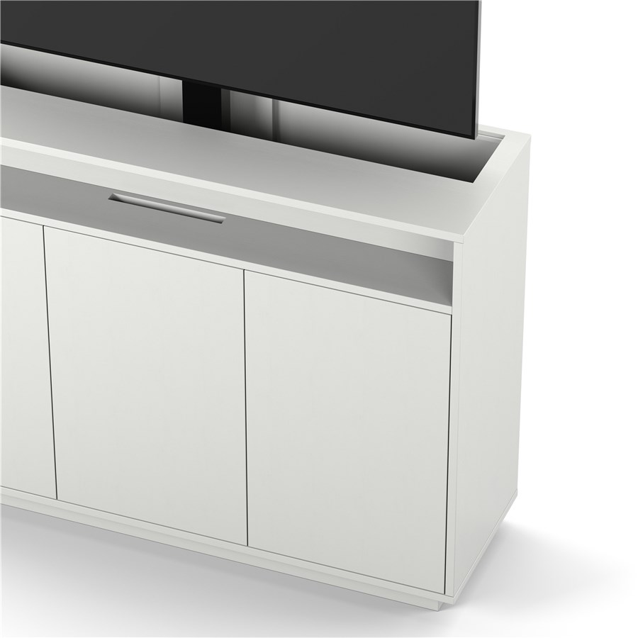 Ny kollektion med TV-liftar så du kan hålla din TV utom synhåll och genom ett knapptryck på fjärrkontrollen kan du lyfta och sänka din TV ur skänken. Bakom sockeln finns 6 stycken hjul som gör möbeln lätt att flytta på.